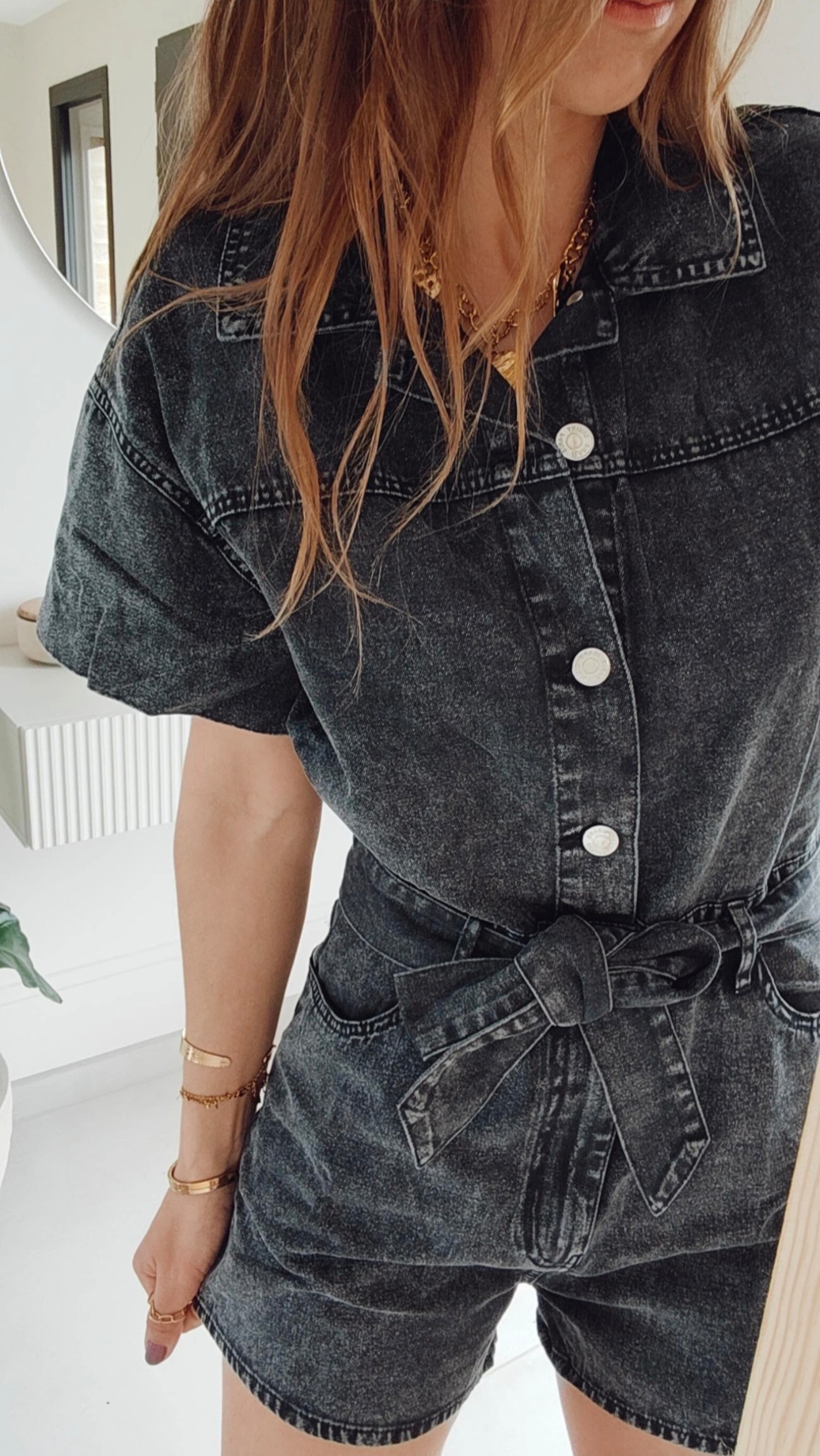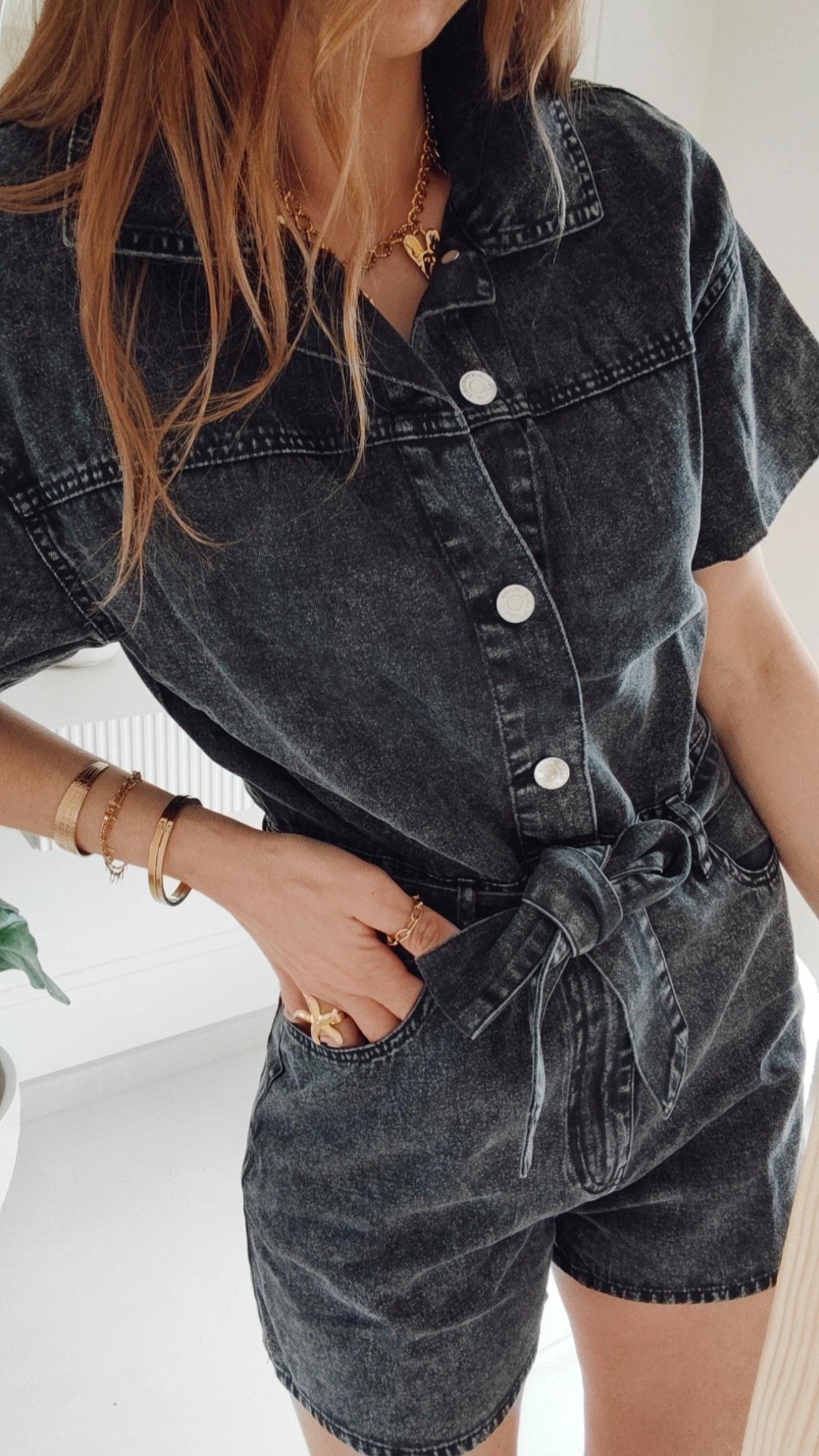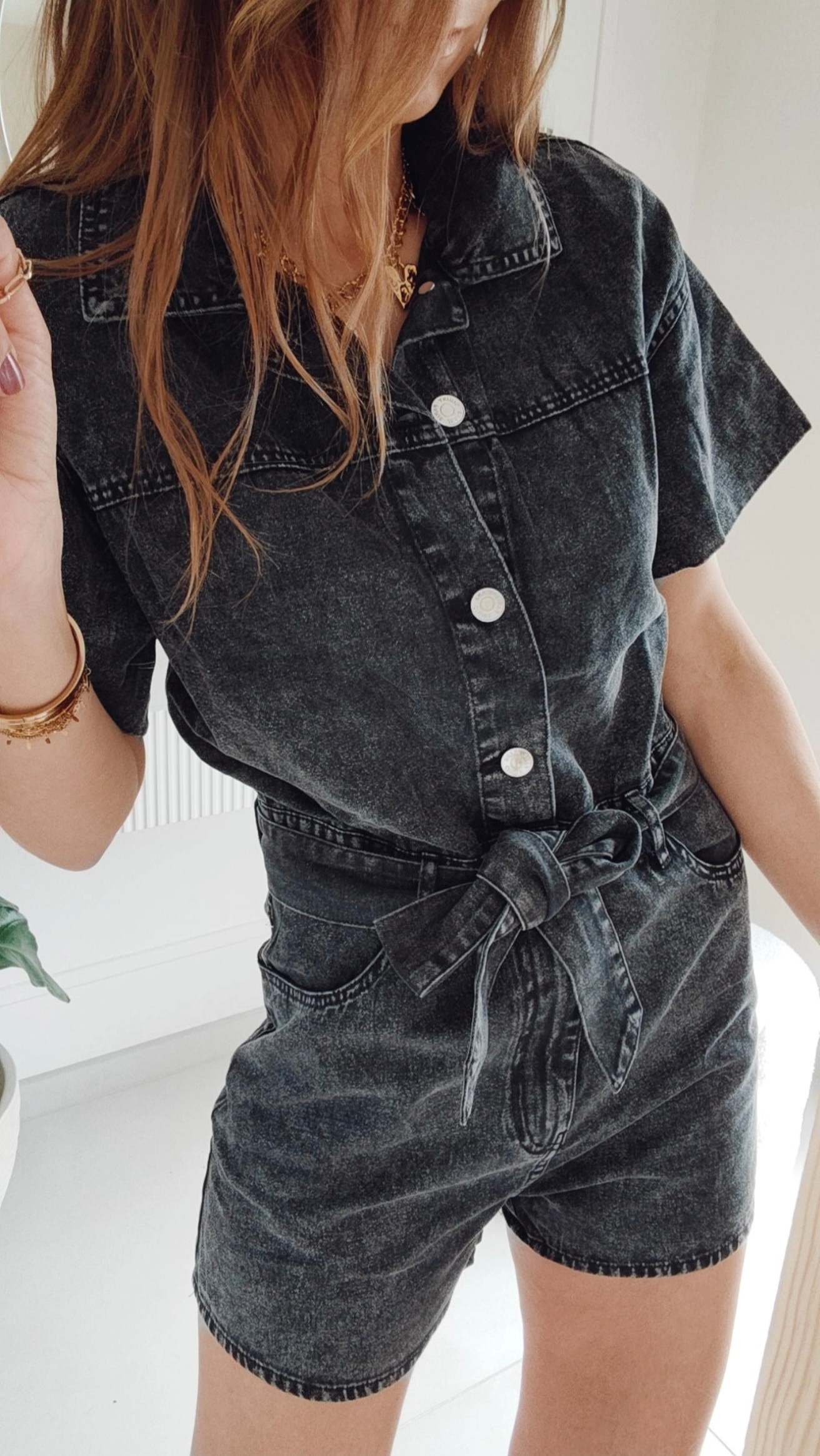 Soyez le premier à laisser votre avis sur “Combi short Nora – denim noir délavé”
