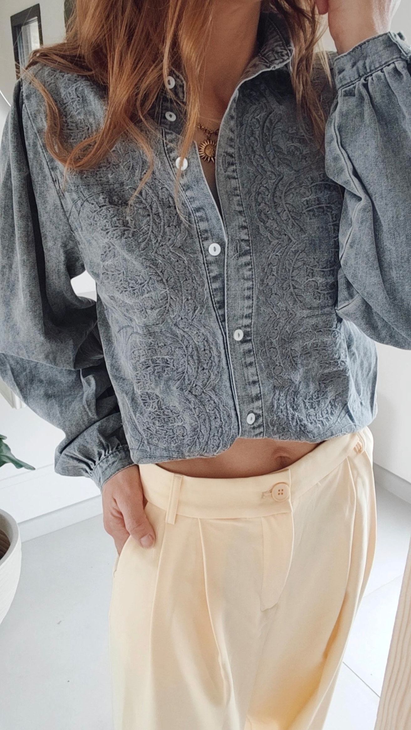 Soyez le premier à laisser votre avis sur “Elora – Chemise denim grise à épaules bouffantes”